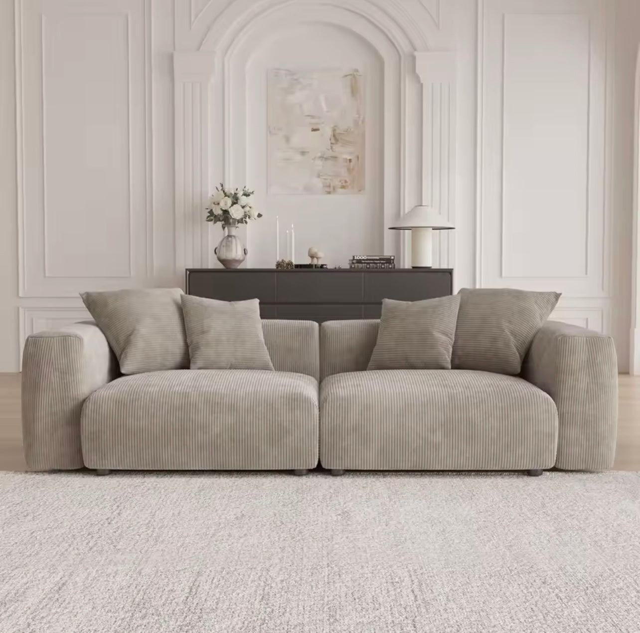 Experience ultimate comfort with this 102” modular sectional sofa, crafted from high-quality corduroy fabric that is soft, durable, and wrinkle-resistant. Each module can be arranged freely, allowing you to customize your seating layout to suit any living space. The removable covers make cleaning effortless, keeping your sofa fresh and tidy. Built on a sturdy wooden frame, this sectional provides reliable support for long-term use. With a generous rest area of 78.74” L x 31.49” W, this couch is perfect for lounging, reading, or socializing with family and friends. Its modern design adds style and elegance to any living room.