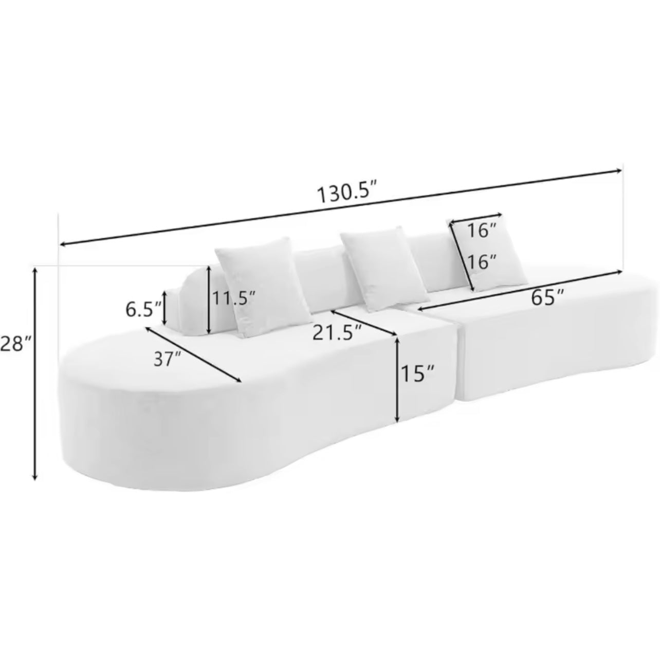 Relax in style with this 4-seater curved modular sectional sofa. Soft terrycloth upholstery is breathable, durable, and skin-friendly. The sofa includes 3 ergonomic pillows and a robust sponge-spring structure for comfort and long-lasting support. Perfect for living rooms, apartments, offices, or dorms.