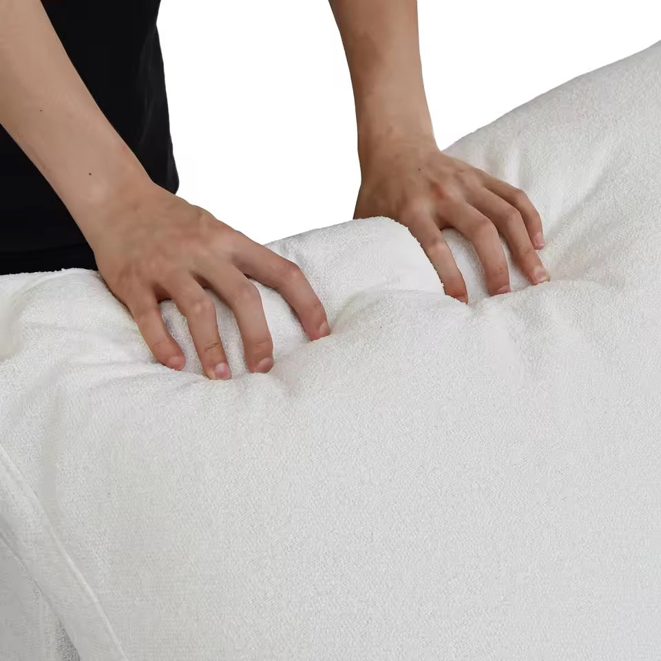 Wrapped in a durable, stain-resistant polyester-linen blend, the cushions are filled with a plush combination of down and synthetic fibers, delivering a soft yet supportive seating experience. The solid and engineered wood frame ensures long-lasting stability, while removable cushions and covers make cleaning effortless.