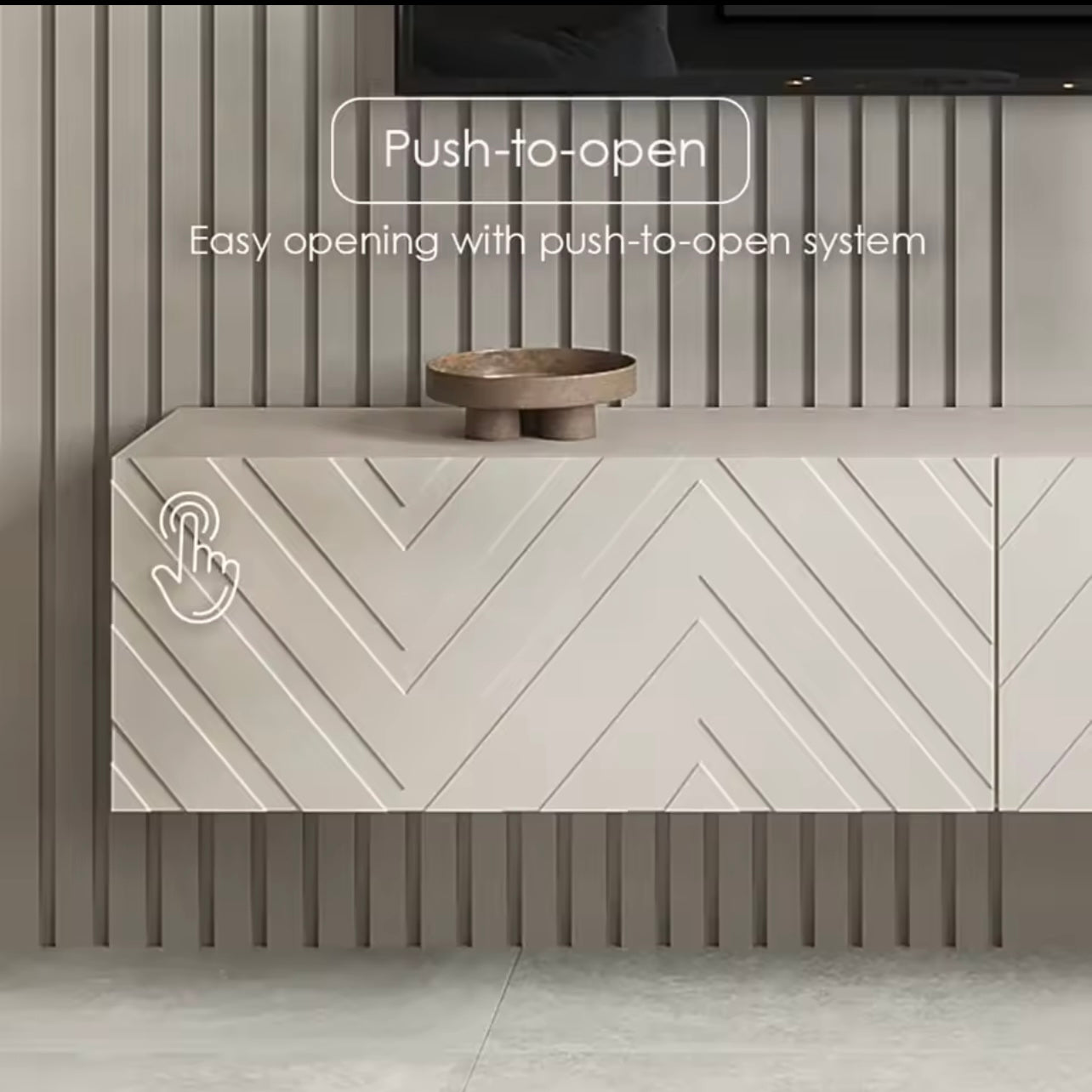 71” Beige Floating TV Console with Push-to-Open Media Cabinet