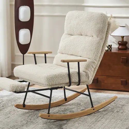 Experience luxurious comfort with this Teddy Velvet Rocking Chair, designed for modern nurseries and living spaces. Upholstered in ultra-soft teddy velvet fabric, it delivers plush coziness while maintaining durability and easy care.