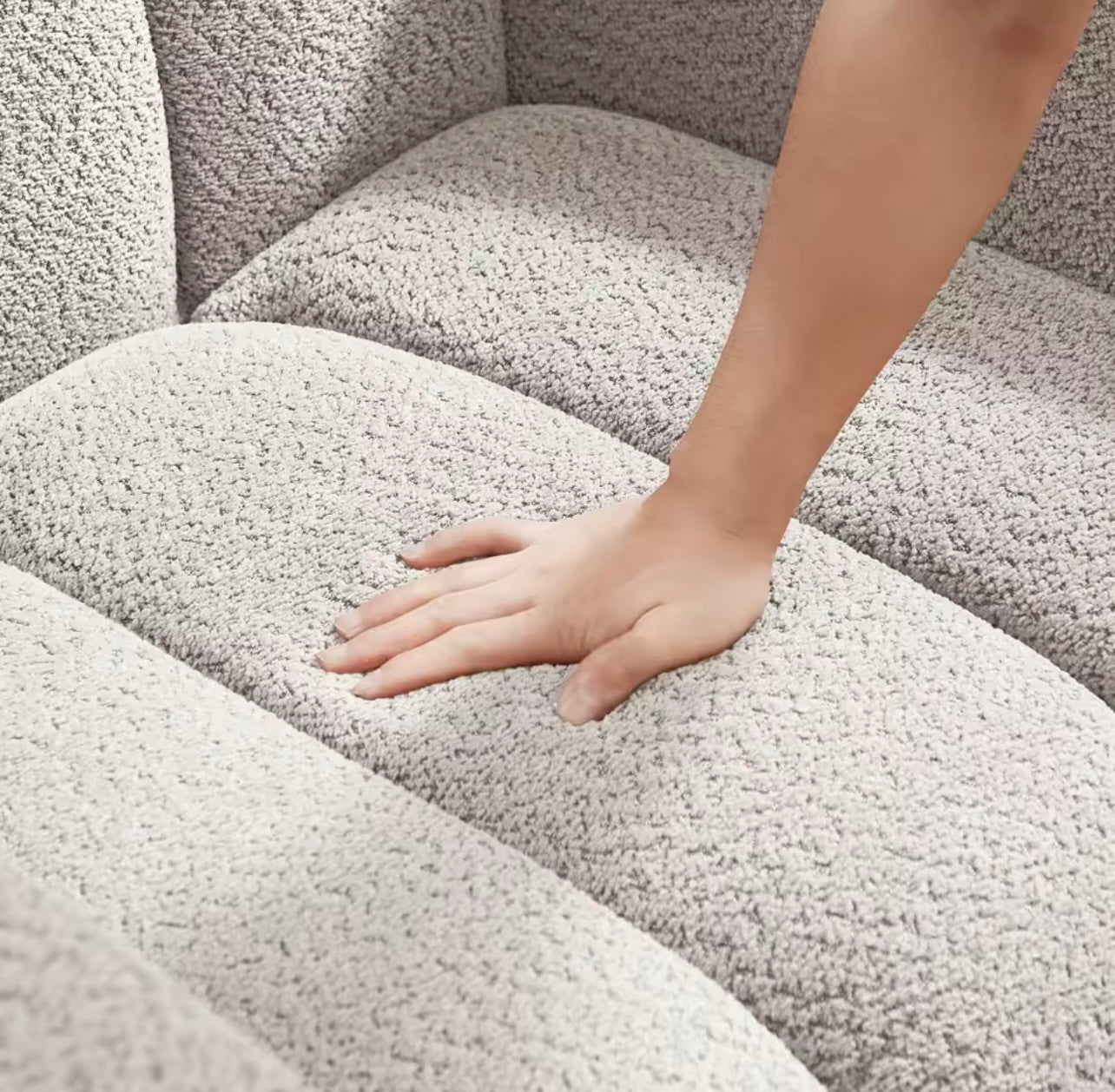 Relax in style and comfort with this Ergonomic Boucle Reading Chair, designed to support your body while adding modern elegance to any space. Its curved backrest, thick seat cushion, high-density foam padding, and horizontal armrests follow the natural contours of your body, offering long-lasting comfort after a busy day.