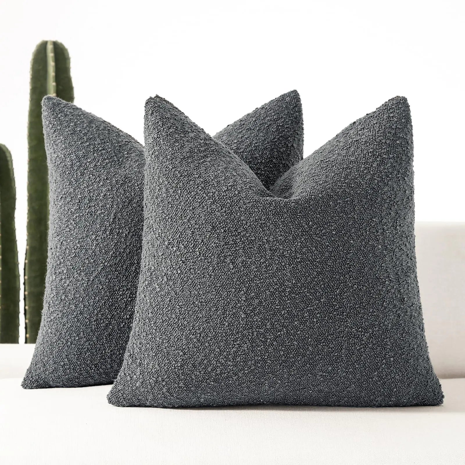 Charcoal Bouclé Decorative Throw Pillow Covers 16"x16" Set