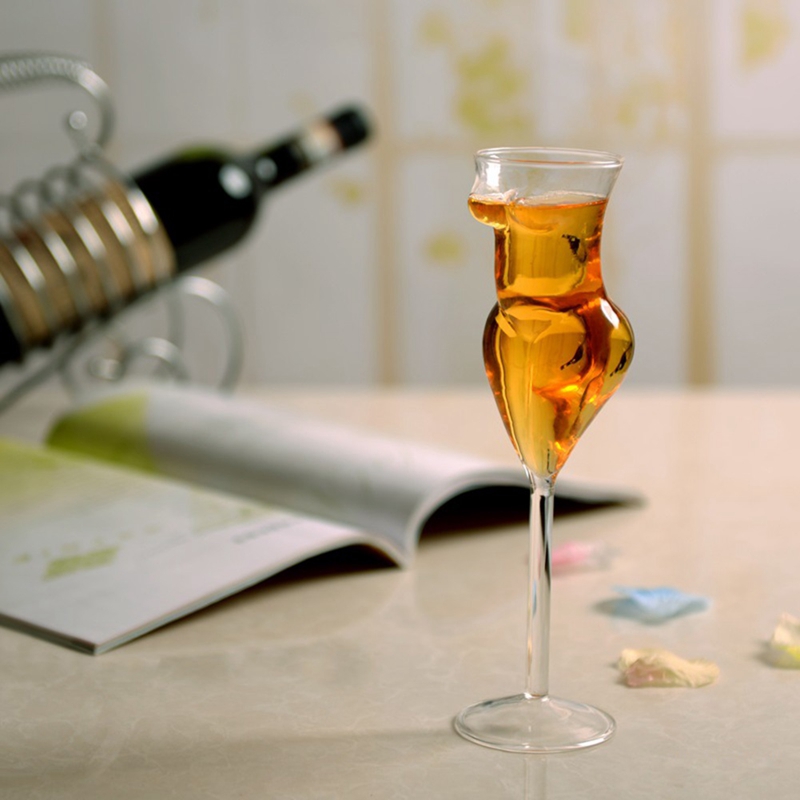 Unique 100ml human-shaped crystal wine glass made from borosilicate glass. Perfect as a gift or artistic barware.