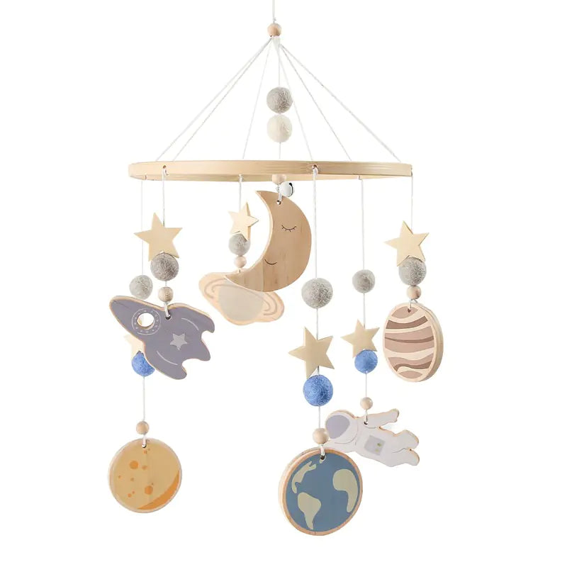 Crafted from high-quality wood and soft felt, each piece is hand-finished for safety and long-lasting beauty. The gentle movement and wind-chime sound help lull your baby to sleep while stimulating visual and auditory development.