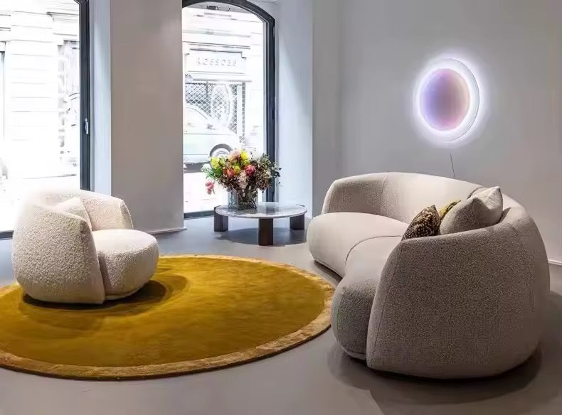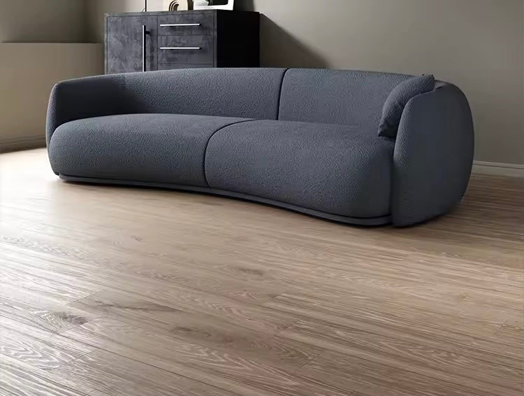 Elevate your living space with this Dutch vintage-inspired curved sofa, combining elegance, comfort, and durability. Upholstered in soft lambhair-like polyester fabric, it offers a luxurious, skin-friendly feel reminiscent of natural wool.