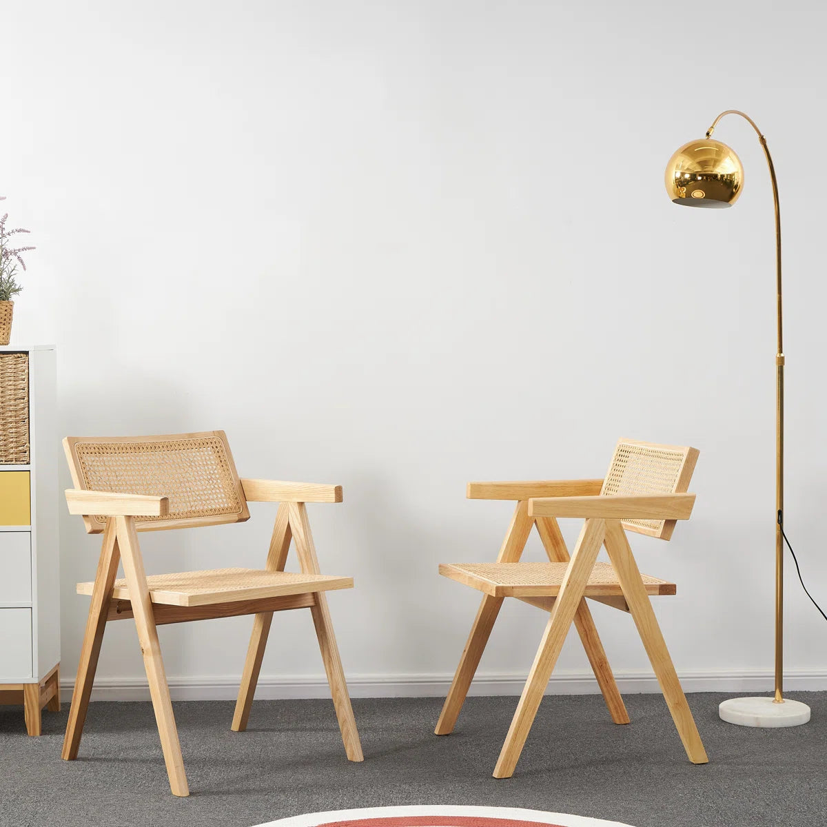 Set of 2 Cane Back Solid Wood Dining Armchairs