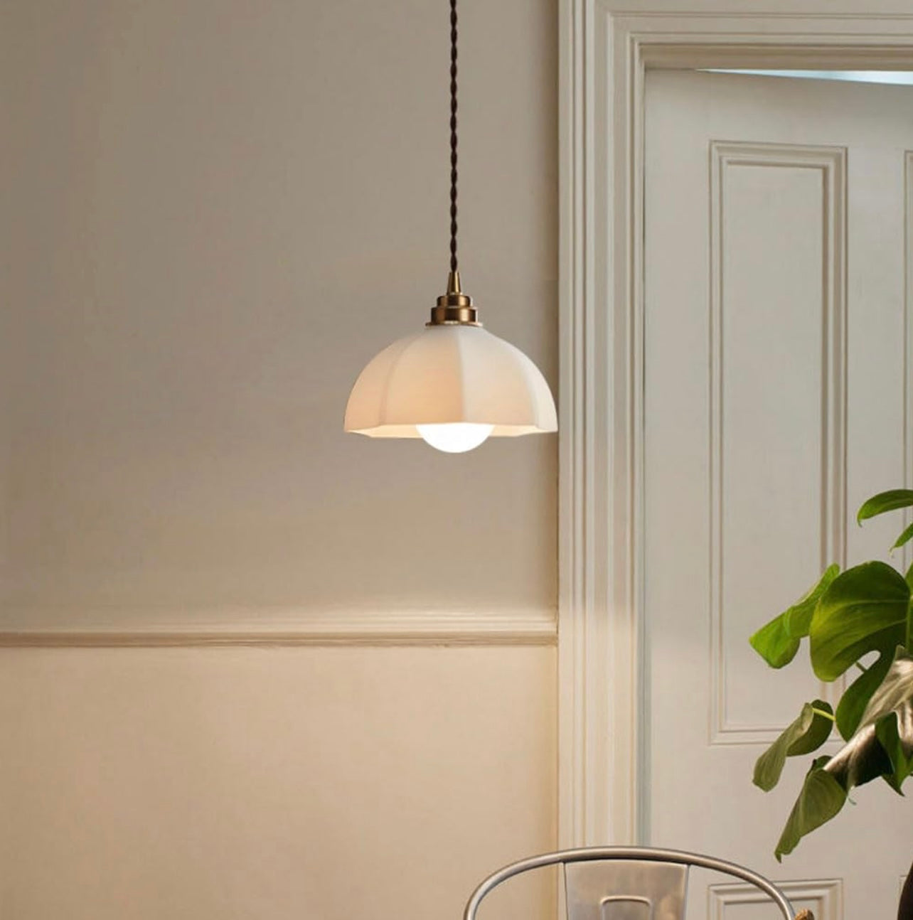 Weighing 1.3 kg, it’s stable yet easy to install. The combination of brass structure and glass diffuser creates a balanced look that suits modern and transitional interiors.