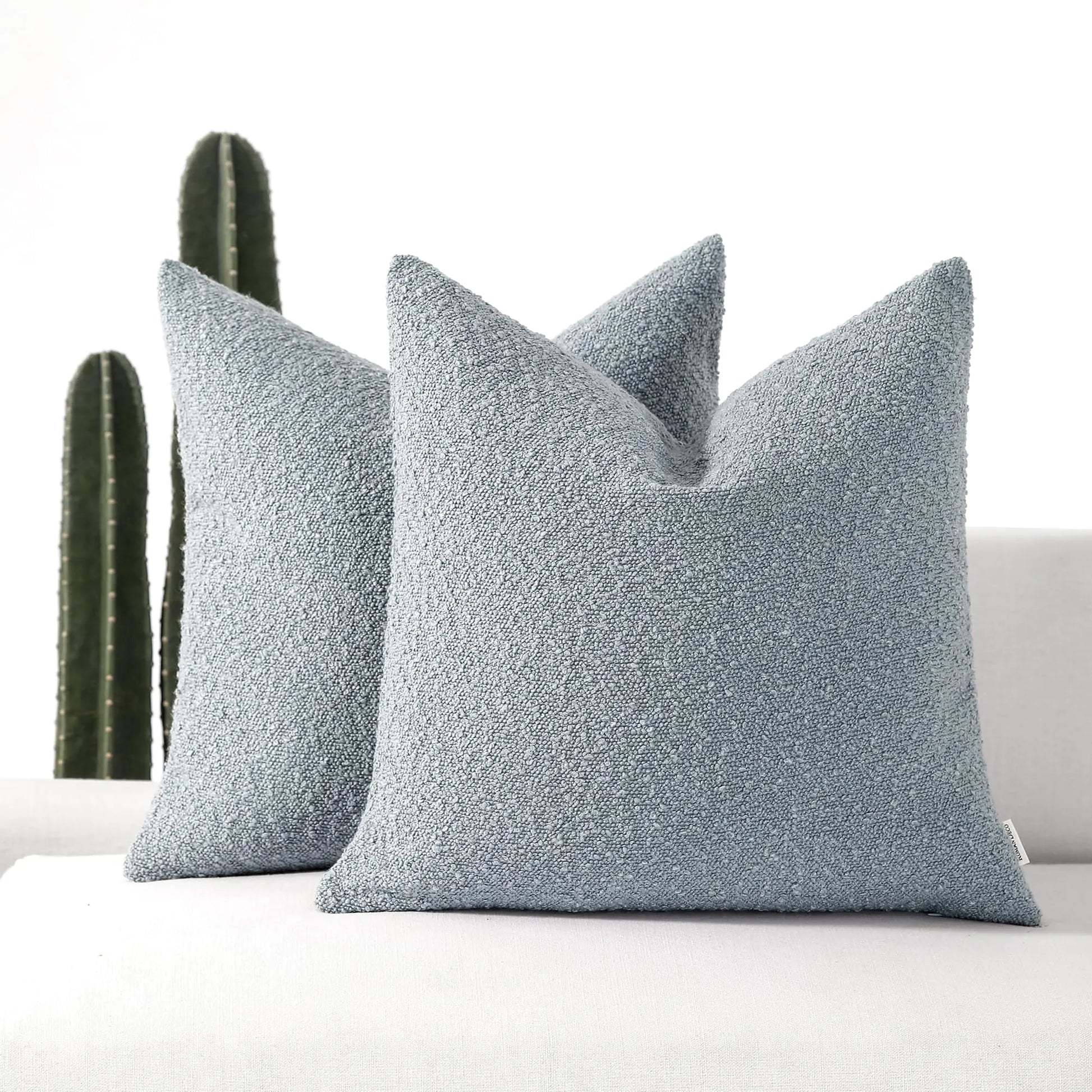 Light Blue Bouclé Decorative Throw Pillow Covers 18x18" Set
