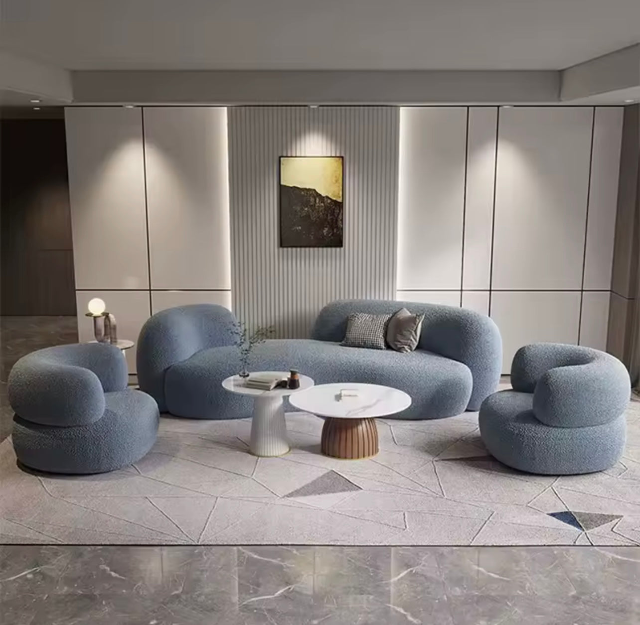 Bring soft, modern elegance to your living room with this Nordic curved lambswool sofa. The light-luxury fabric offers a plush, skin-friendly feel while resisting wear, dirt, and deformation over time.