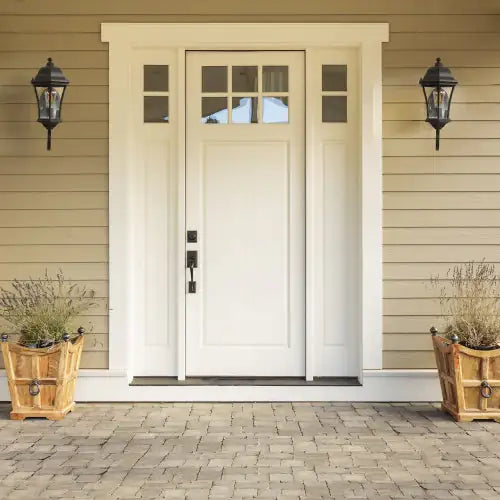 Featuring automatic light sensing, these wall-mounted fixtures are weather-resistant and compatible with E26 bulbs (up to 60 W).