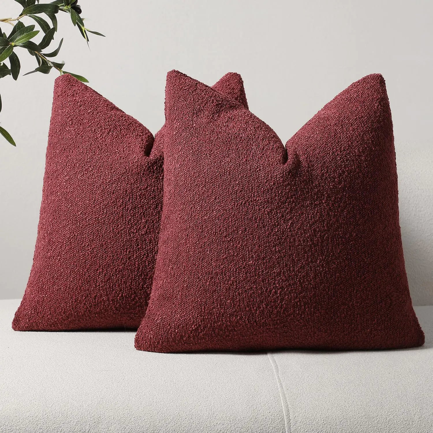 Bring texture and sophistication to your sofa or bed with this set of two 26x26 pillow covers in burgundy bouclé fabric. Cozy and durable, they instantly refresh your interior.