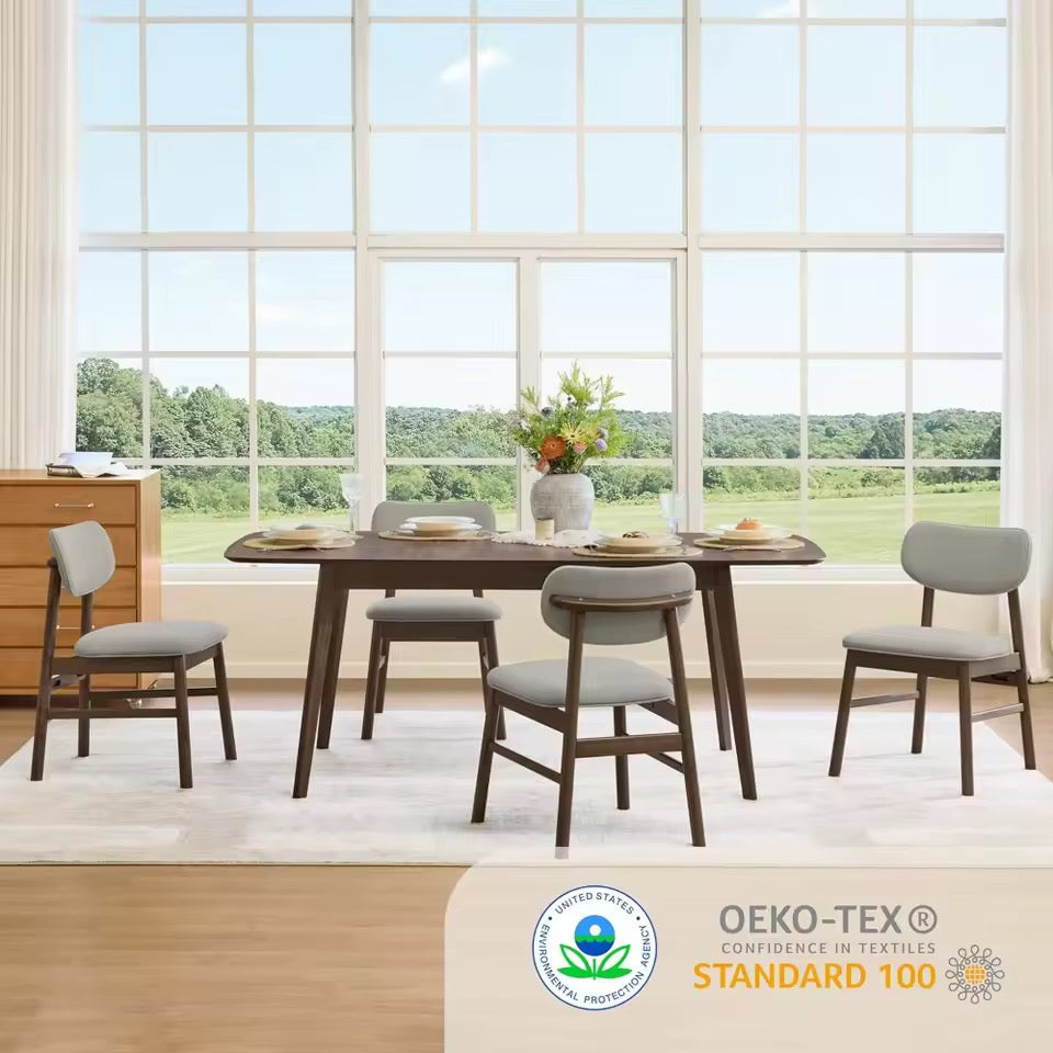 Elevate your dining space with this set of 2 Mid-Century Modern Upholstered Dining Chairs. Crafted with a solid wood frame in walnut, these chairs combine durability with timeless style. The plush OEKO-TEX certified chenille fabric adds a soft, luxurious touch while being easy to clean and maintain.