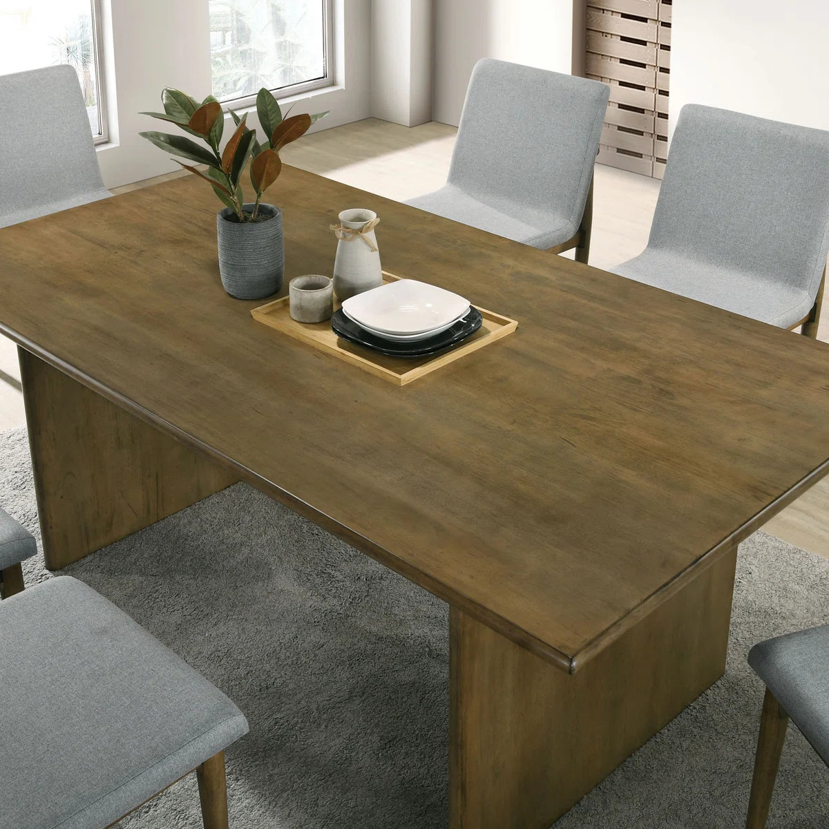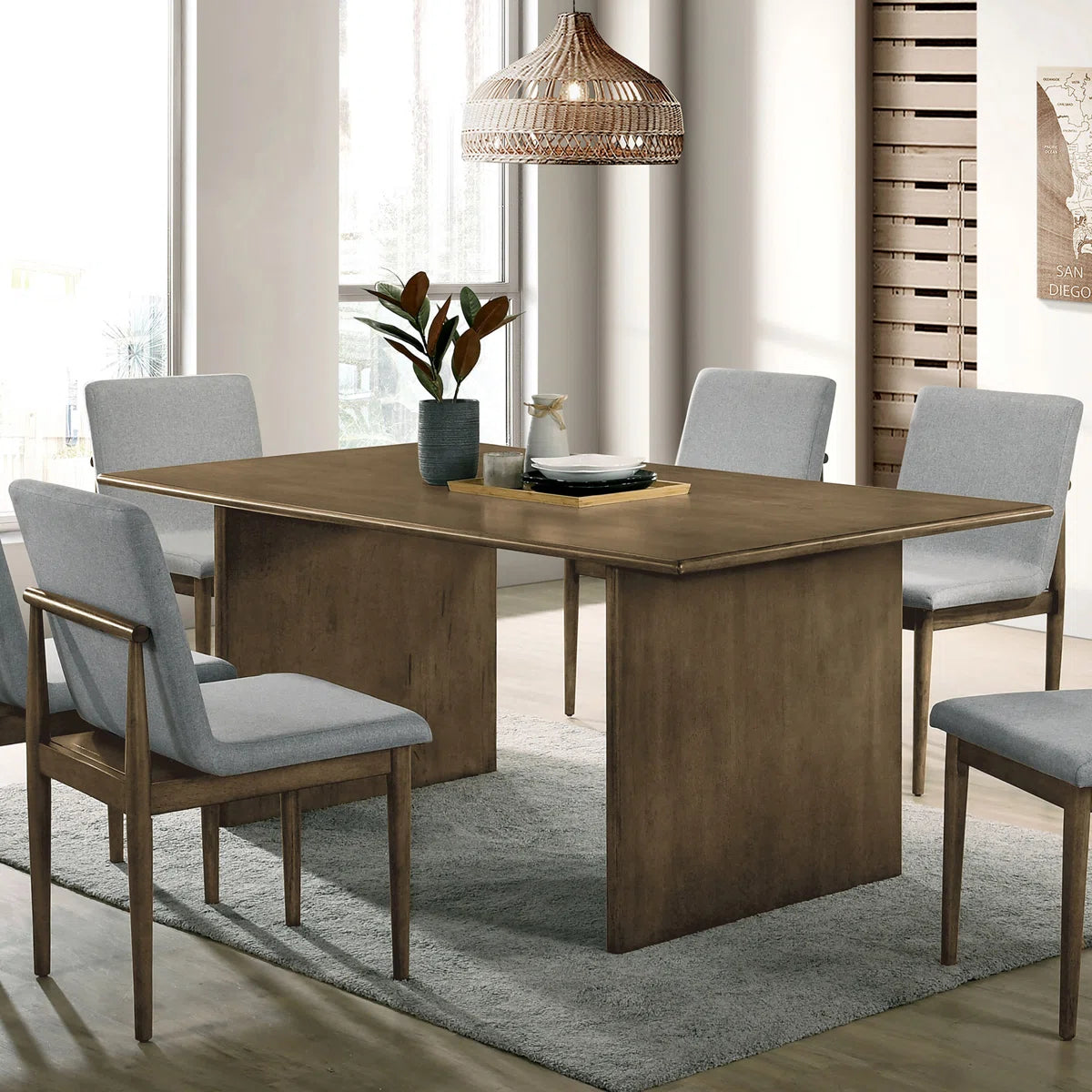 Add timeless style with this set of 2 dining chairs crafted from solid wood with natural tone frames and light gray upholstered seats. The mid-century modern design features round tapered legs and cushioned seating for everyday comfort.