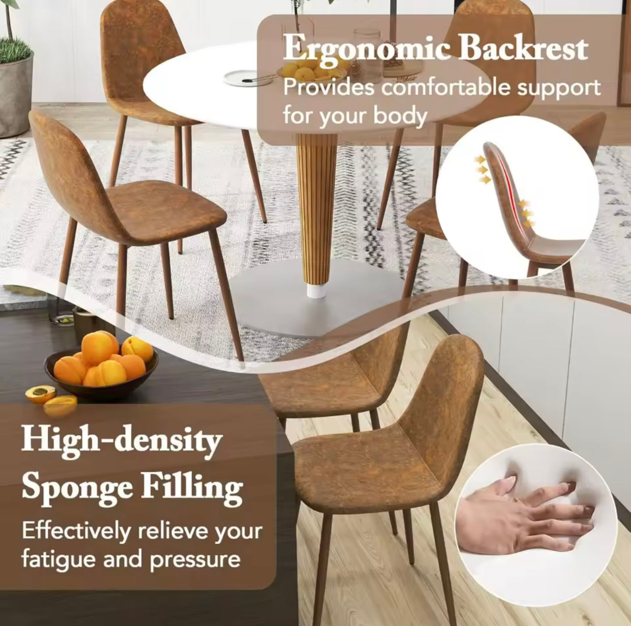 Modern Vintage Flair: The combination of brown PU leather-textured seats and metal legs with a wood-grain effect adds timeless mid-century modern elegance, perfect for kitchens, dining rooms, cafes, or apartments.