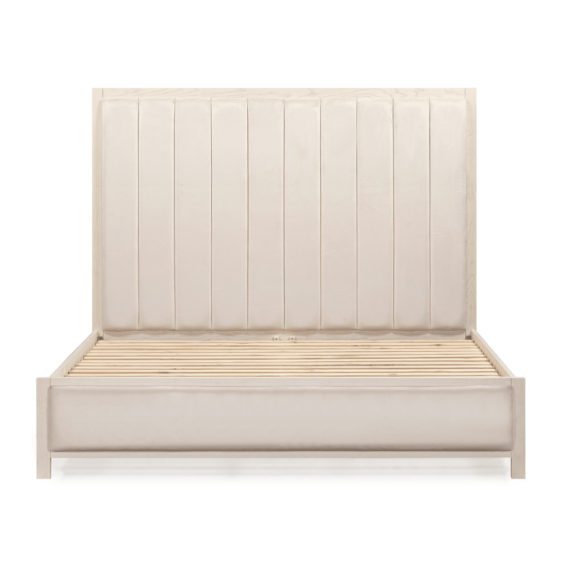 This statement piece features a soft cream velvet headboard and footboard, framed in a cream wooden finish for subtle detailing.