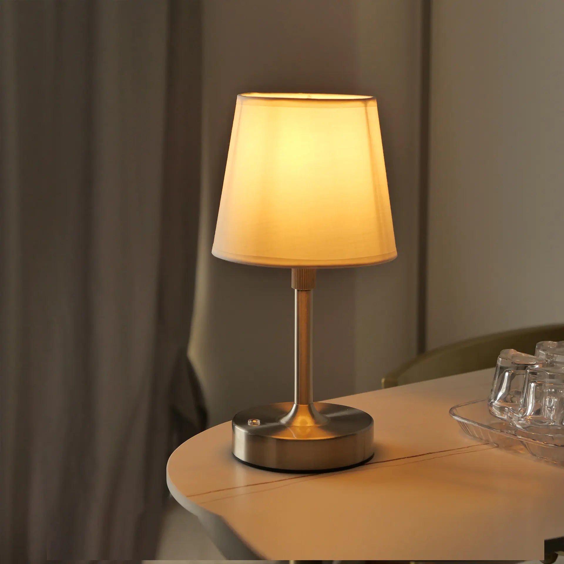 Add a touch of vintage charm to your space with this retractable fabric table lamp. Featuring a sleek metal base and a rechargeable, touch-sensitive warm light, it's perfect for restaurants, bedrooms, and cozy corners. Choose from five stylish colors to create your ideal ambiance.