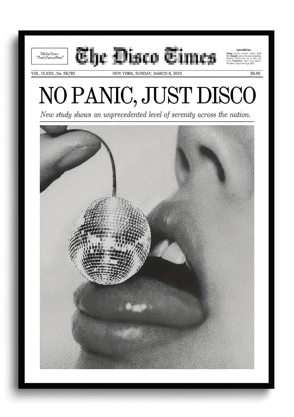 Bring personality and fun to your space with this vintage black and white wall art featuring a playful cherry disco ball and retro newspaper-inspired design. This piece combines preppy, feminine, and nostalgic aesthetics — a perfect balance of humor and sophistication.