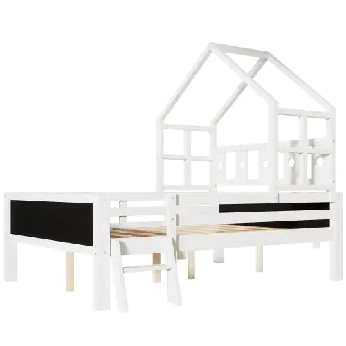 White House Bed for Kids Bedroom Kids Bed with Trundle & Ladder