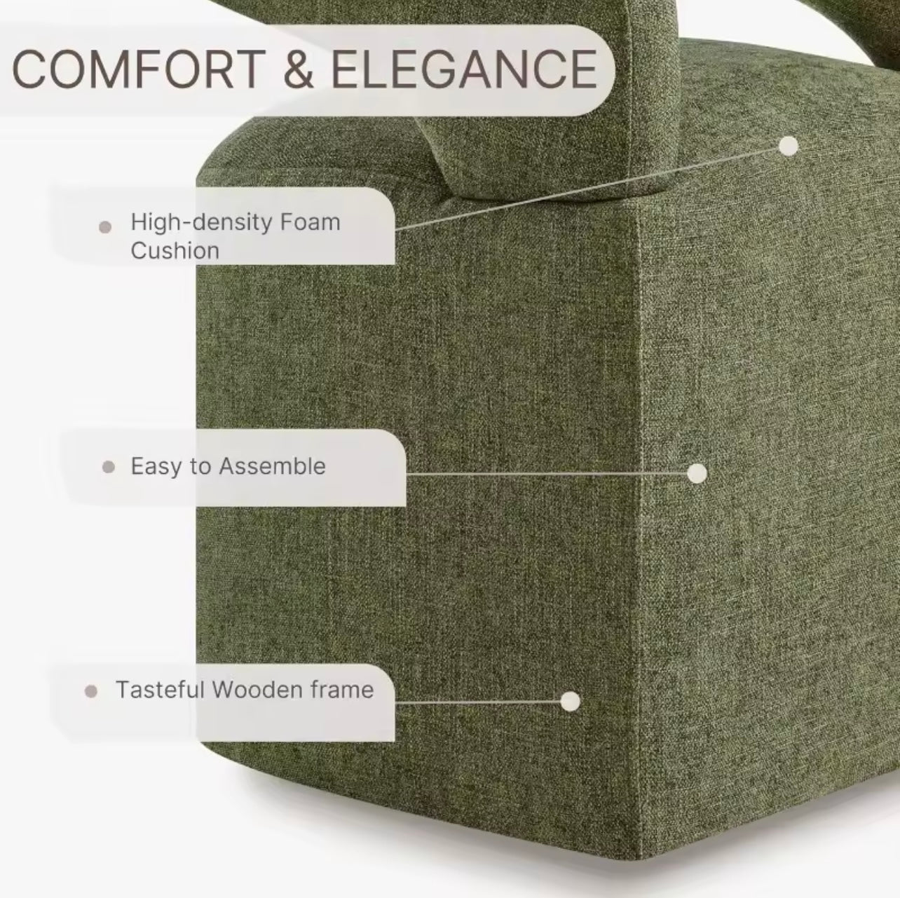Built to last, the chair features a solid engineered wood frame with kiln-dried wood for durability and stability, along with synthetic webbing suspension for added support. Assembly is simple and fast, typically taking 15–30 minutes with included hardware and instructions.