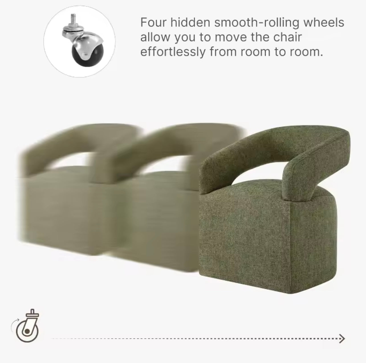 Upgrade your dining and living spaces with this modern set of 4 dining chairs featuring hidden, removable casters. Designed for versatility, the chair glides smoothly across floors for easy relocation but can be converted into a stationary chair in seconds, offering both mobility and stability.